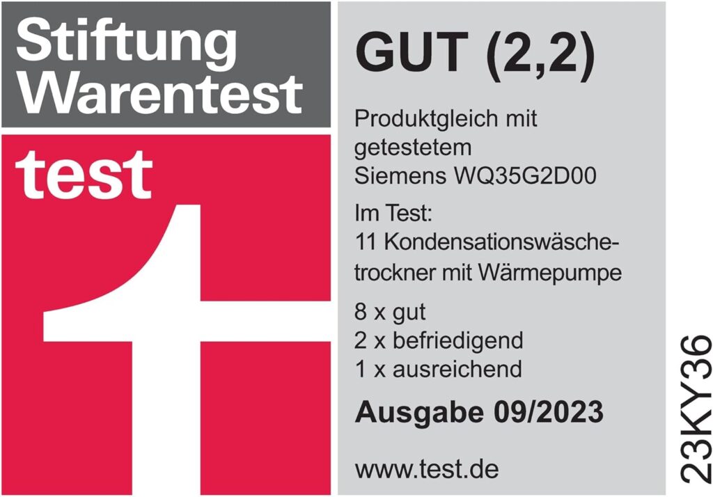 - Funktionen: AutoDry, Selbstreinigender Kondensator, Sensitive Drying, Anti‑Vibration